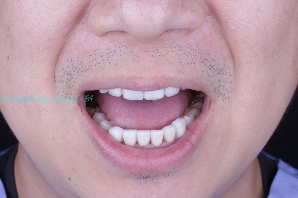 Dr. Y finally decided to consult with our board-certificed prosthodontist, cosmetic dentist Dr. Qing for the solution. Designing together with the national top ceramist, Dr. Qing came out with the plan to whiten and straighten his smile. After Dr. Y approved the design, minimally invasive procedures were done. Ceramist Joe fabricated the artistic veneers