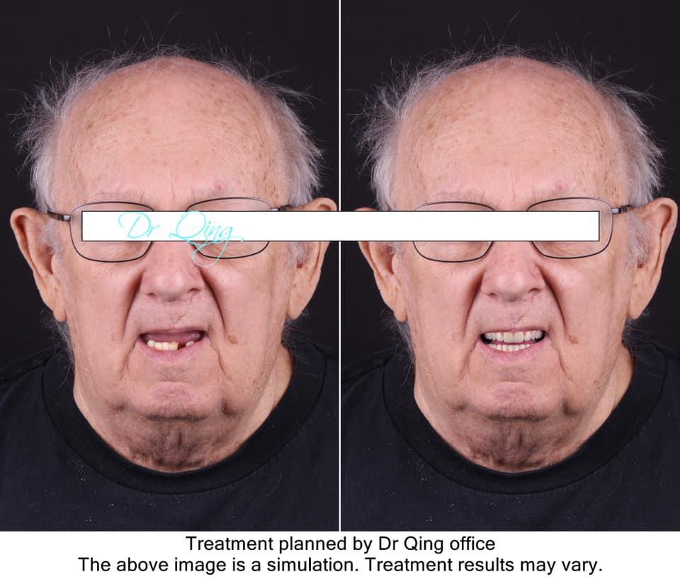 After several consultations and thorough examinations, Prosthodontist Qing office did pre-operatory digital design, simulation and treatment planning ( Fig 1 and 2) , the planing is the most important part to ensure a smooth execution and successful long-term outcome.