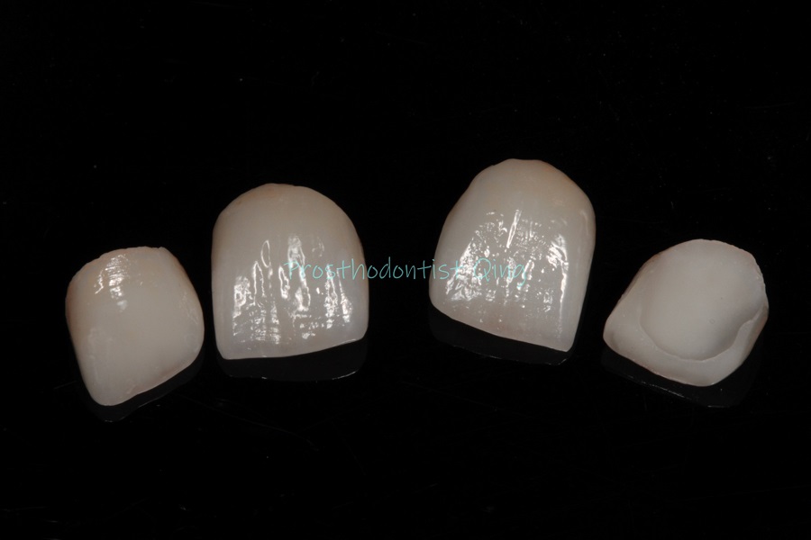 Our ceramic artist, Jon, fabricated four ceramic veneers with intricate details that mimic the natural beauty of teeth. The final results pleased the patient.
