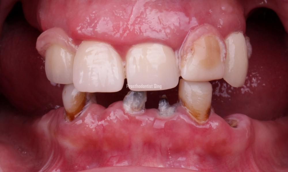 This lovely lady presented with the goal to restore her smile. Unfortunately, the remaining several teeth can no longer be restored or strategically be used for the future reconstructive plan. Extractions were done and on the same visit, we gave the patient the immediate provisional denture. The immediate temporary denture serves the following purposes: