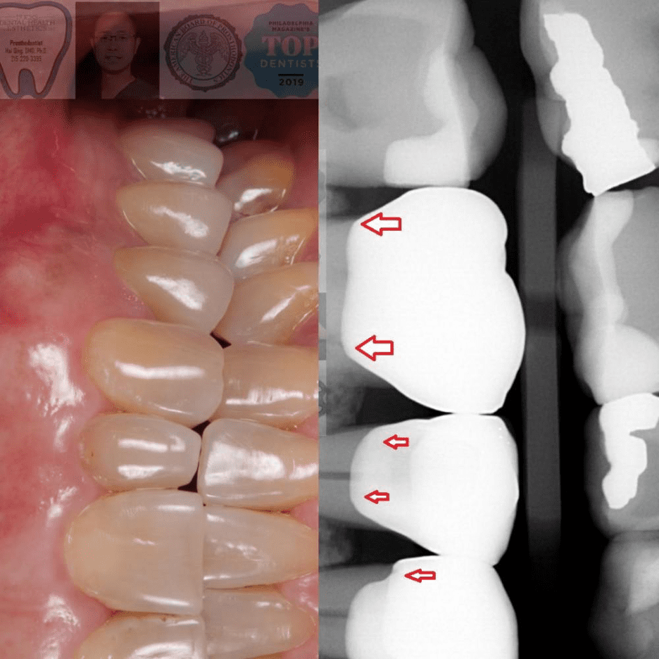 Click to See Dr. Qing’s actual patients who received crown treatment (The red arrows indicate the details of the crown margin seal, contour, and color match).